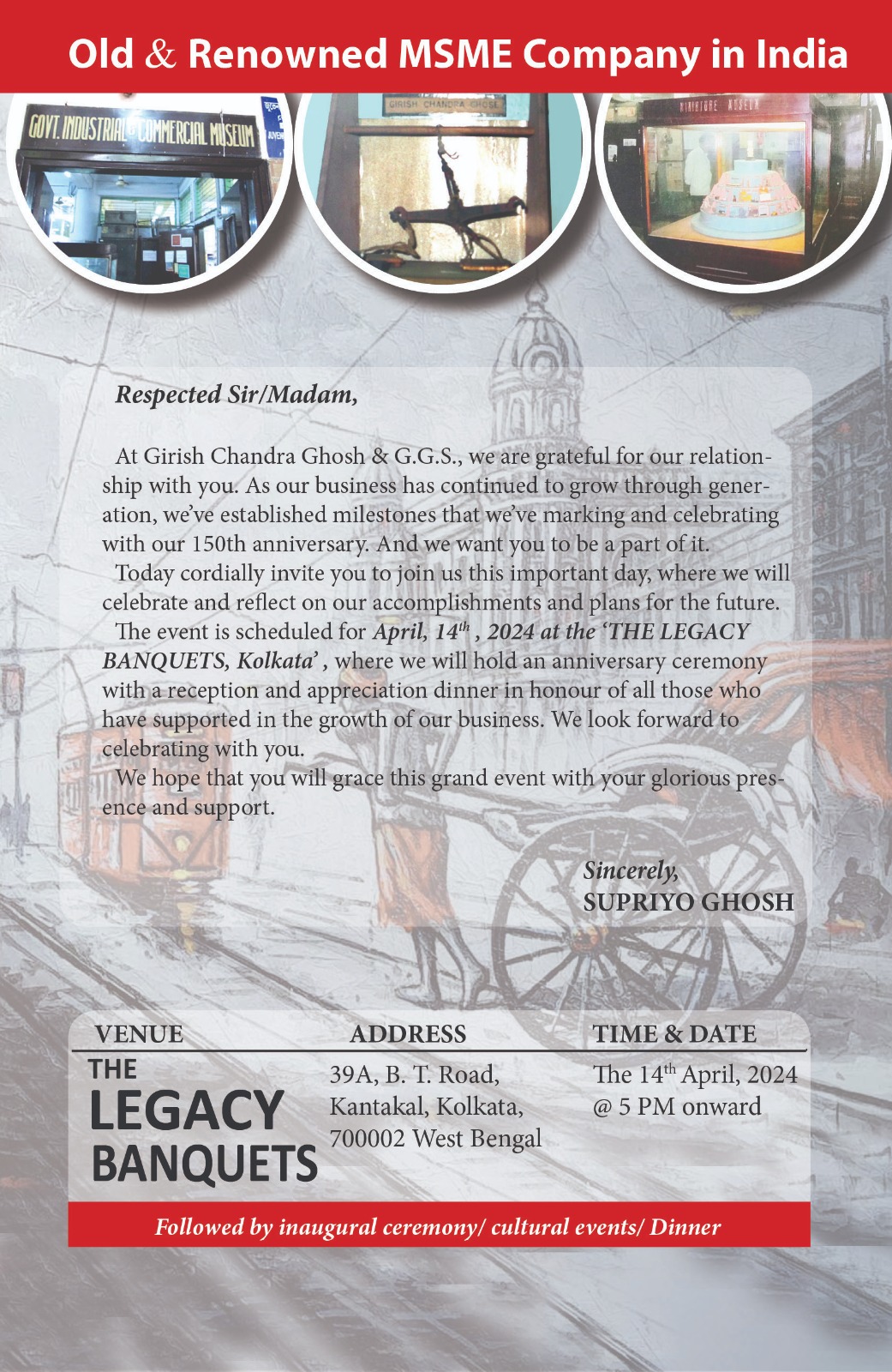 Colourful celebration of 150 years by M/s Girish Chandra Ghosh & GGS at The Legacy Banquets, Kolkata. 14th April, 2024 Glimpse of Inaugural Ceremony, Felicitation Ceremony & Cultural Event
