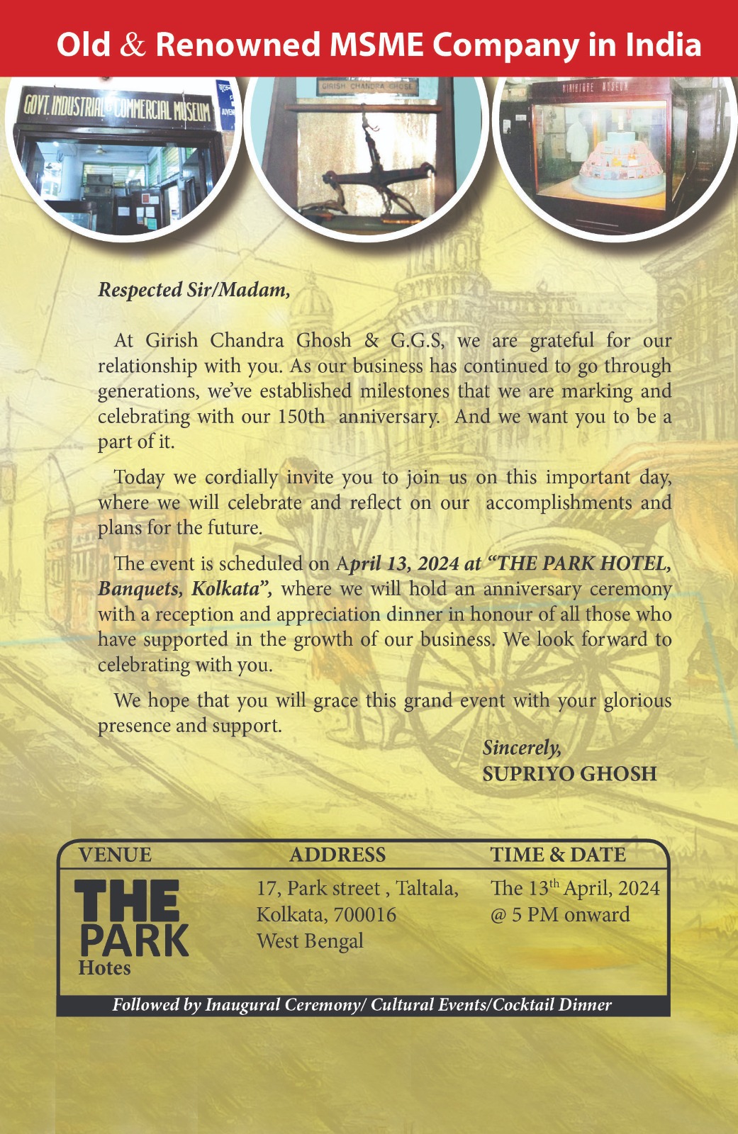 Colourful celebration of 150 years by M/s Girish Chandra Ghosh & GGS at The Hotel Park, Kolkata. 13th April, 2024 Glimpse of Inagural Ceremony, Felicitation Ceremony, Cultural Event & Cake Cutting Celebration by Team Members
