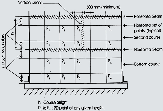 - Circumference measurement of each course at least 2 per course