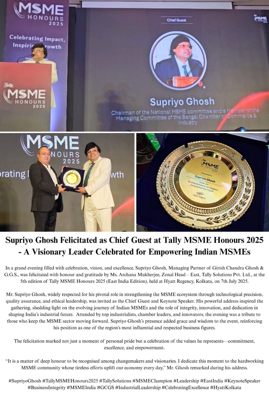 Tally MSME Award Programme held on 7 July 2025 at Hyatt Regency, Kolkata — a proud and memorable occasion.