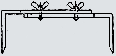 (14) Step Over – A device of metallic or wooden frame holding two scribing points used in strapping for measuring the distance apart along the arc of two points on a tank shell where it is not possible to use a steel tape directly because of an intervening obstruction (e.g. a protruding fitting or an intruding dent). The difference between the apparent distance between two points on a tank shall as measured by a strapping tape passing over on obstruction and the true arc distance as measured by a step-over in termed as a ‘void’. If the apparent distance is greater than the true arc distance, the void is said to be ‘negative’. The corrected circumference is obtained by subtracting the algebraic sum of the voids from the measured circumference.