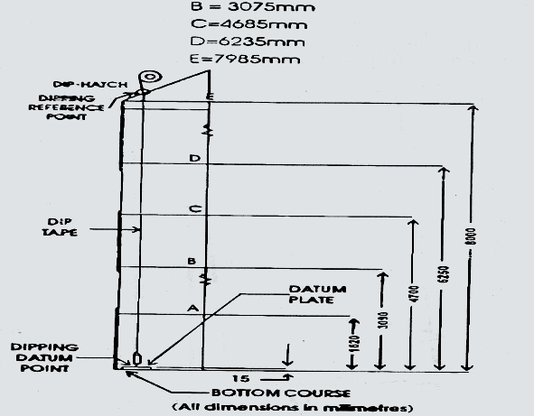 (9) Overall Height – The vertical distance between the dipping reference point and the dipping datum point which shall be marked on the tank at the dip hatch.